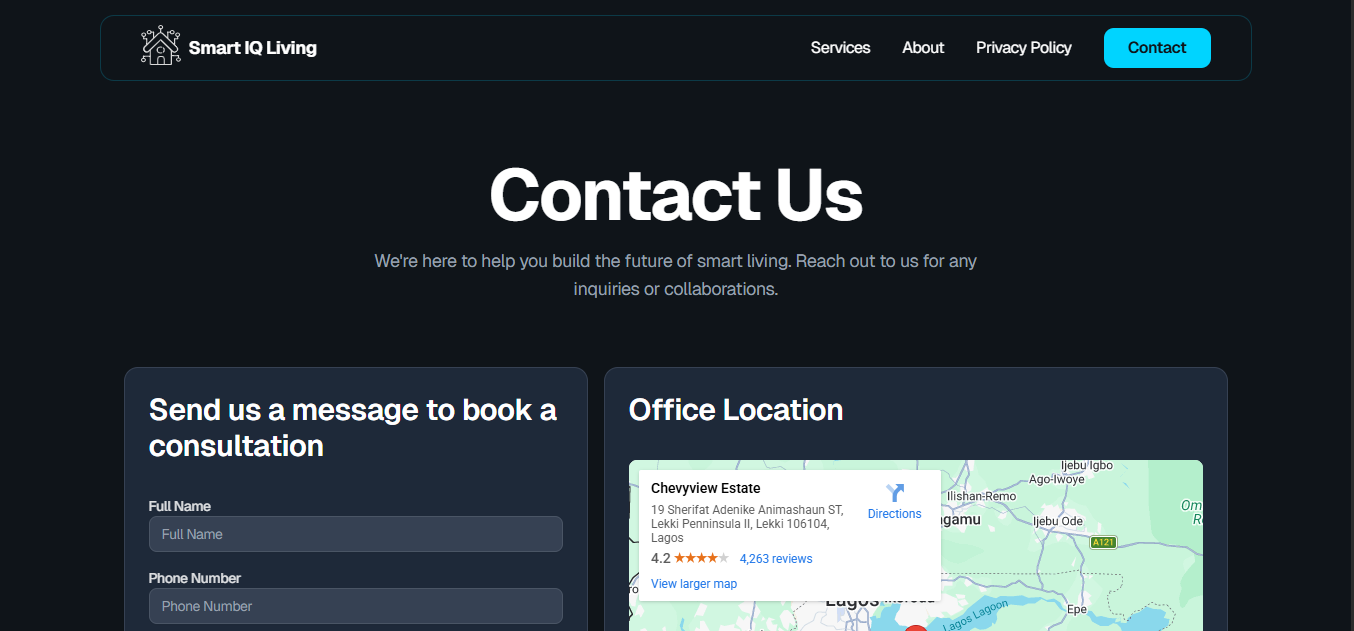 Managed by TEST INFORMATION TECHNOLOGY LIMITED in Nigeria, the company provides smart home automation solutions, including security systems, lighting controls, audio-video integrations, and IoT appliance automation. Services range from consultation to installation and 24/7 support. Partners include Google Home, Amazon Alexa, Haier, and LG. Target: Homeowners for enhanced lifestyle and security. No specific dashboard details mentioned, and no reference to Quill Labs, but IoT integrations align with the described work.