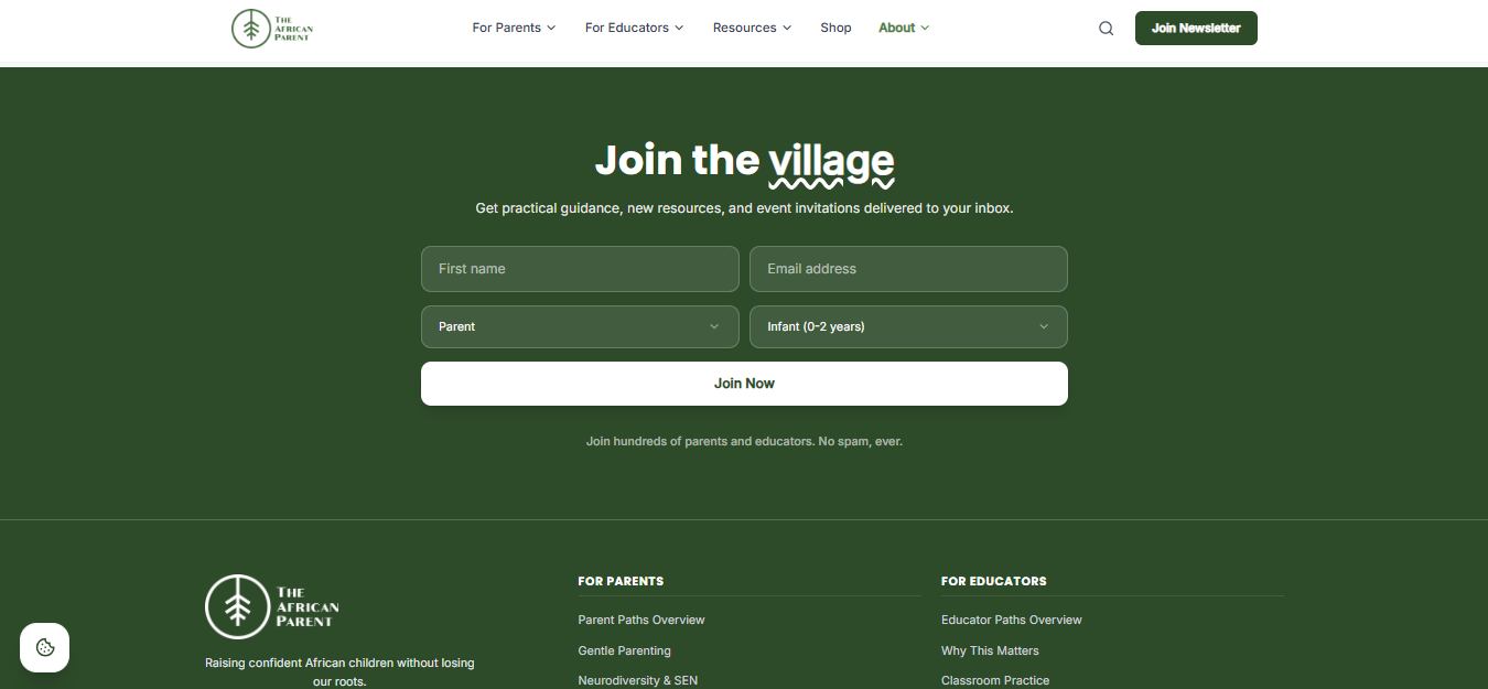 The goal was to create a wholesome experience for African parents in the diaspora seeking to raise their children with confidence while preserving their cultural roots. We worked closely on a content architecture that supports thousands of articles and a vibrant community. The platform handles high traffic while maintaining a warm, accessible aesthetic.